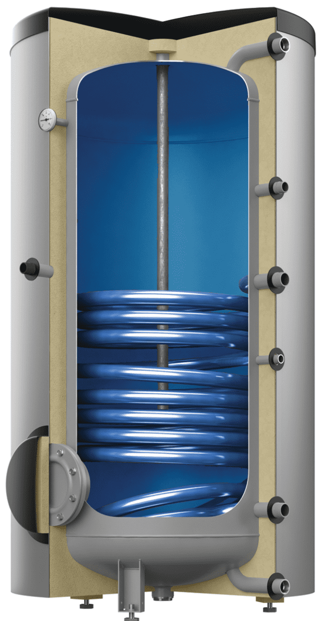 Käyttövesivaraaja yhdellä lämmityspatterilla. Saatavana myös paremmalla energialuokalla ja 2 laipalla.