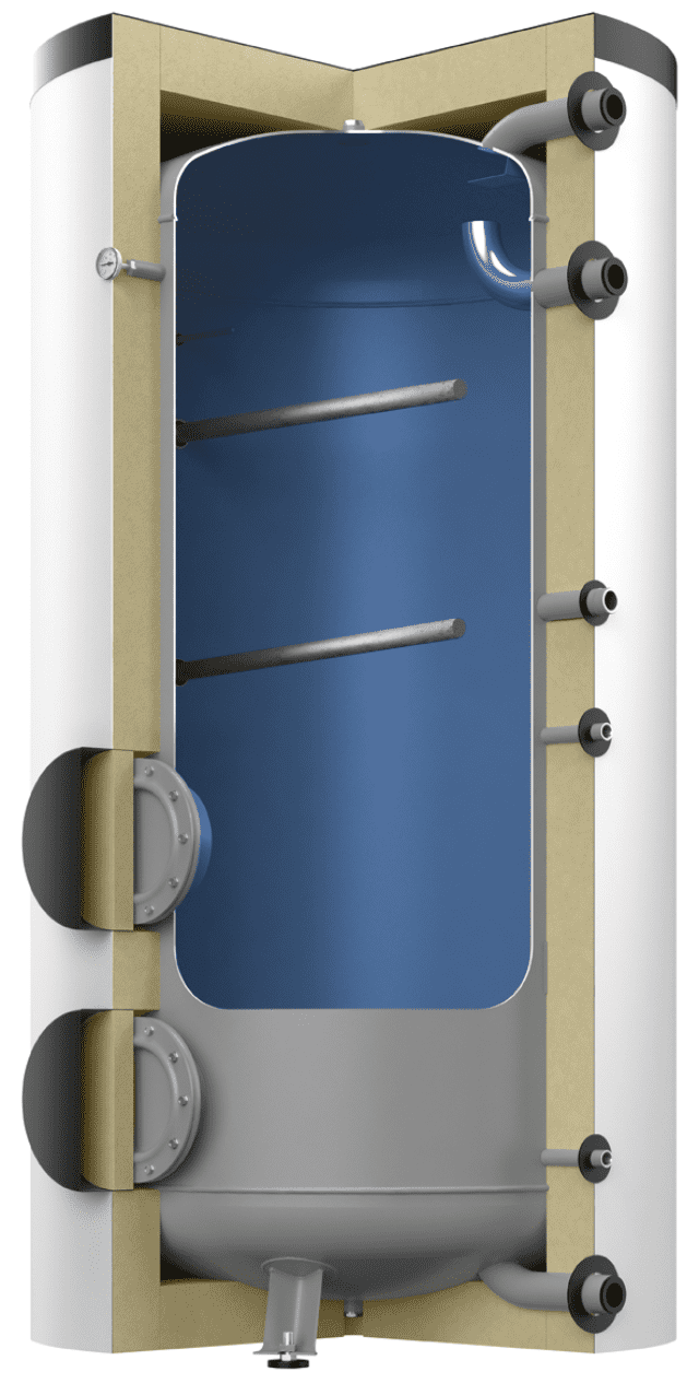 Käyttövesivaraaja kahdella laipalla. Saatavana myös 1 laipalla.